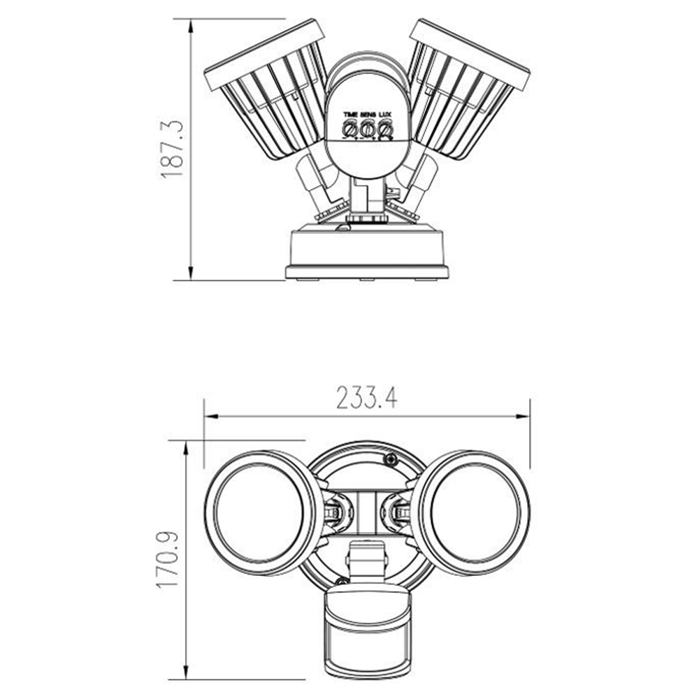 30W Tri Color LED Double Spotlight with Rotable Double-head and 180 Degree Sensor IP65 | White