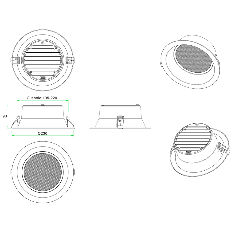 35W White Antiglare High Efficiency Dimmable Tri Color SMD LED Downlight Kit | 195-220mm Cutout