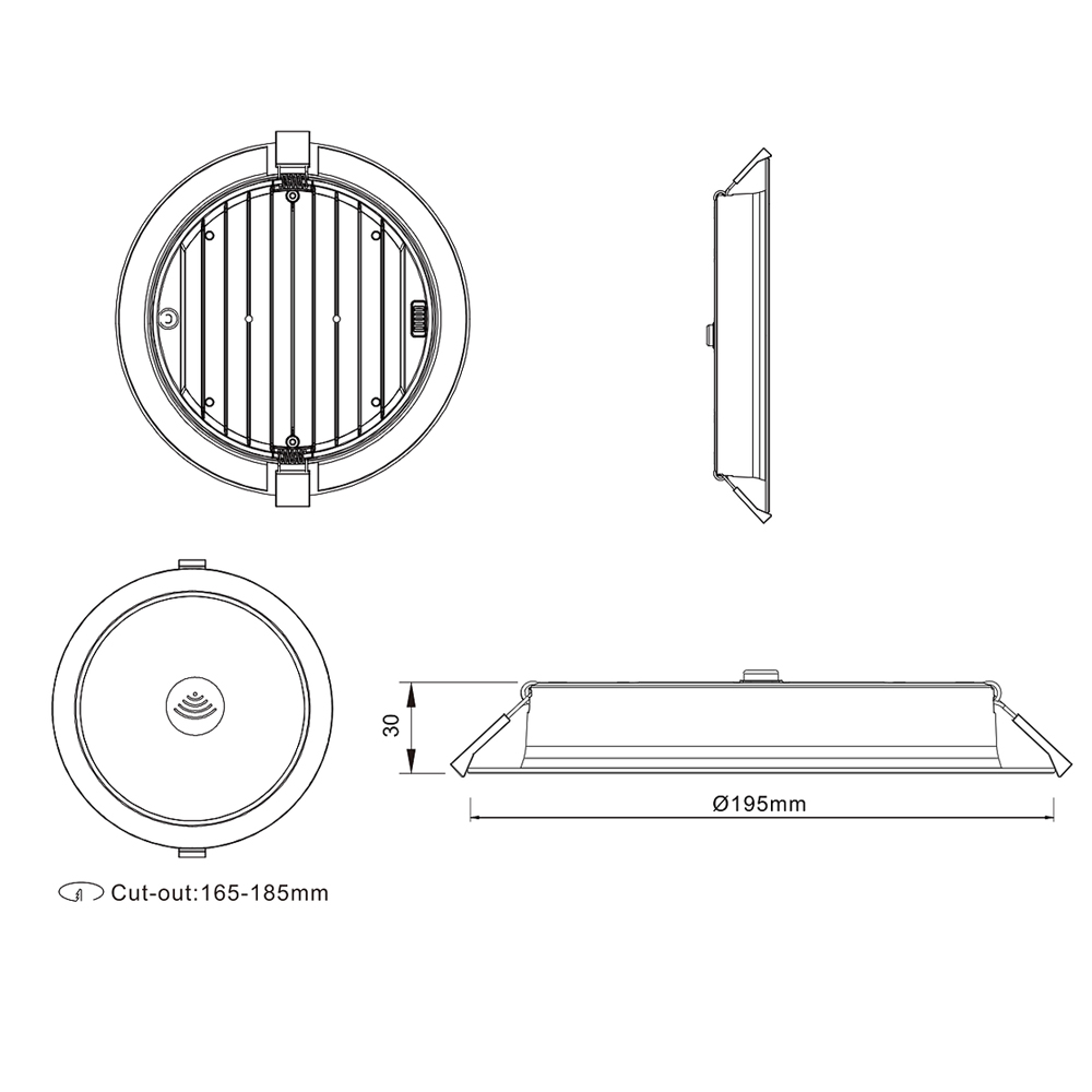 18W White Slim Tri Color Dimmable LED Downlight With Microwave Sensor | 165-185mm Cutout