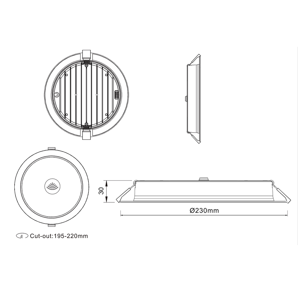 24W White Slim Tri Color Dimmable LED Downlight With Microwave Sensor | 195-220mm Cutout