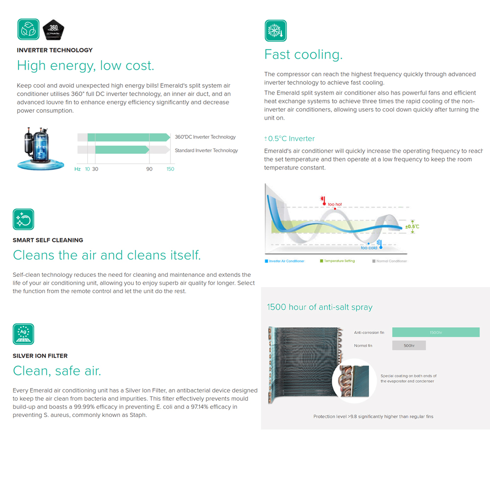 2.5kW Split System Airconditioner AC Inverter | Emerald